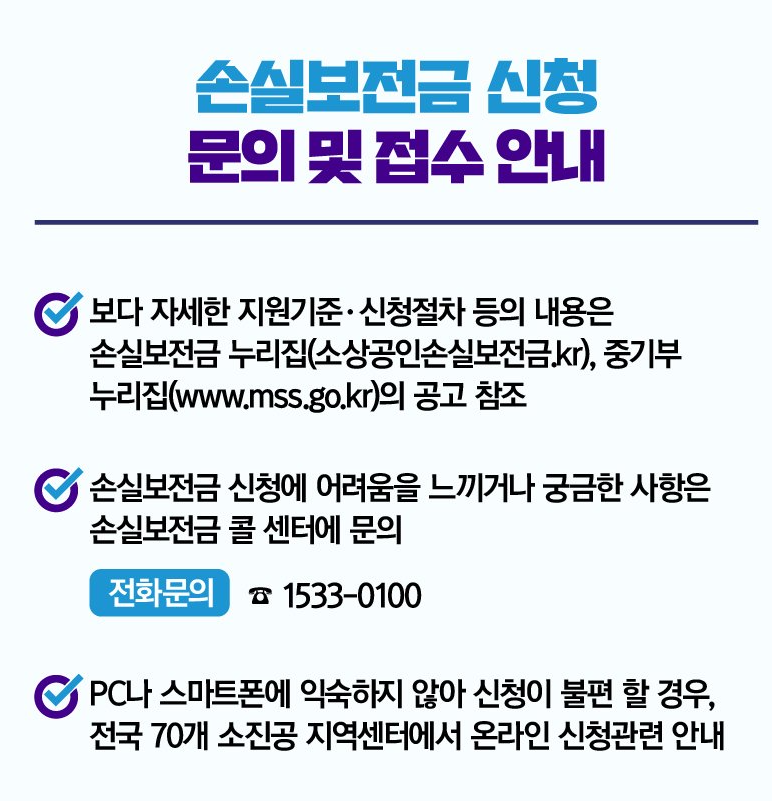 소상공인 손실보전금 누리집에서 신청 가능합니다.