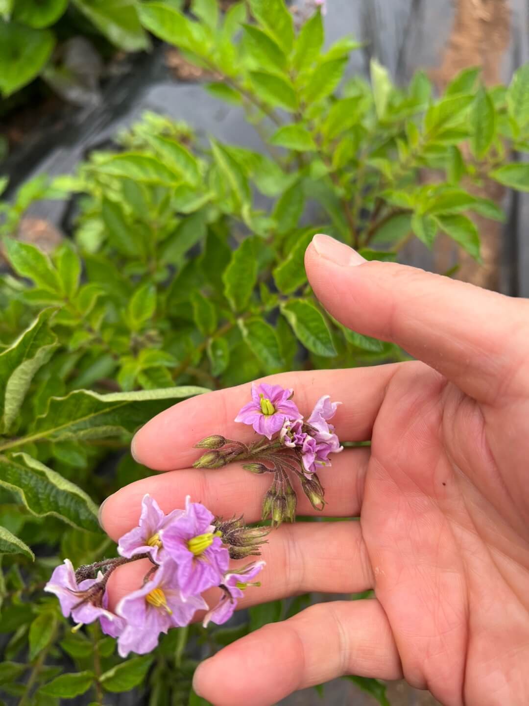 약간 보라색 빛이 나는 감자 꽃!! 하지만 어김없이 감자 꽃도 따주어야 합니다.ㅎㅎ