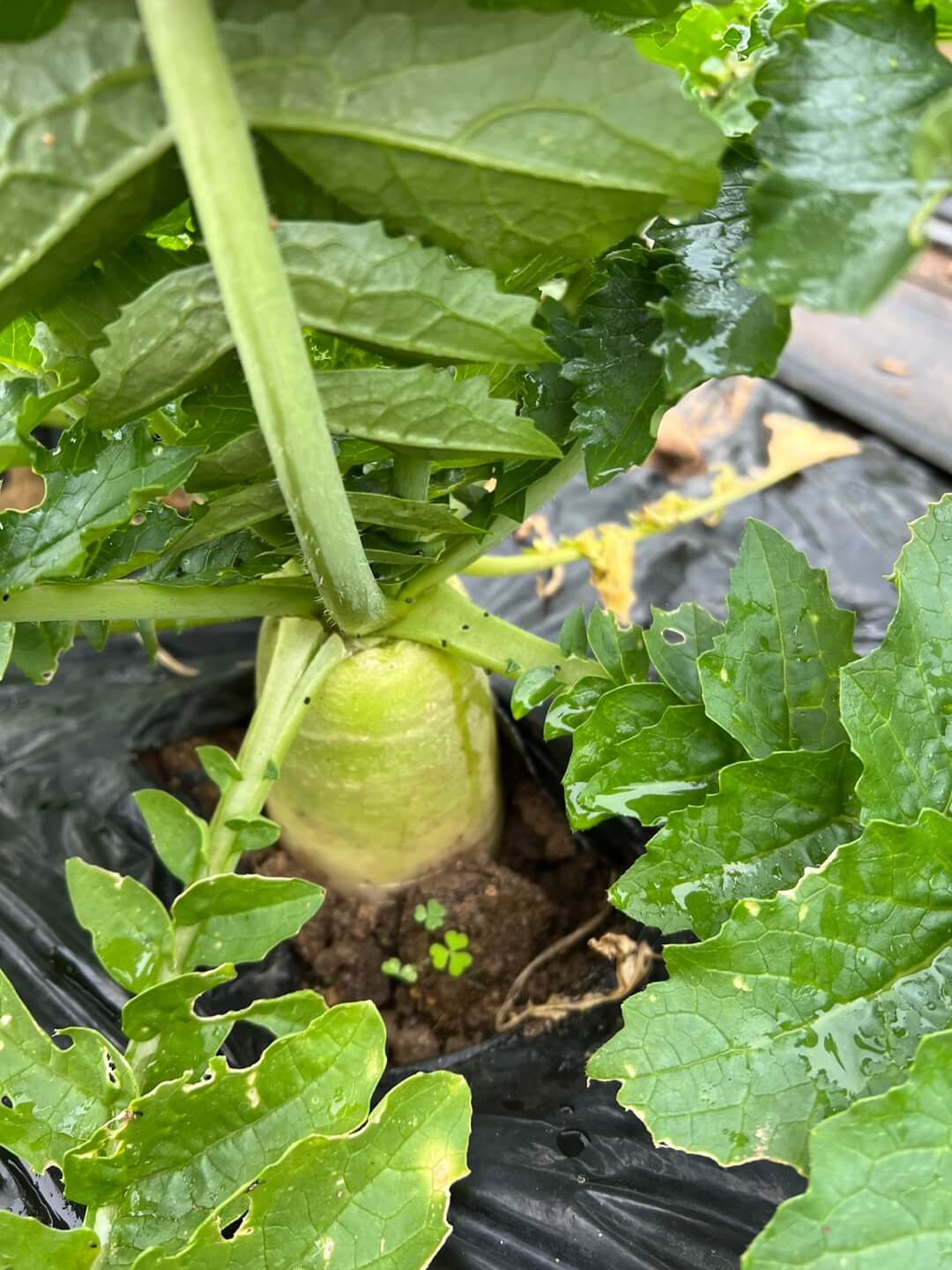 김장 무는 지난주에 준 웃거름 영향인지, 아주 잘 자라고 있었습니다. 원래는 2주 간격으로 웃거름을 줄 예정이었으나 생육이 괜찮기 때문에 보름 뒤에 웃거름을 한 번 더 주는 것으로 올해 무, 배추 농사의 웃거름은 마무리할 예정입니다.