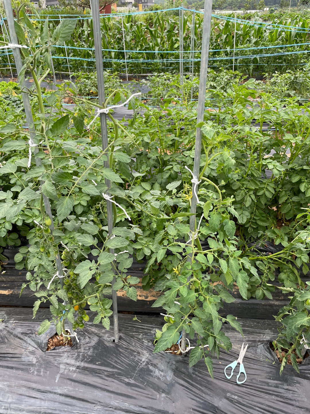 토마토는 혼자 자립할 수 없는 작물이라, 지주대를 세워서 끈으로 잘 묶어 주어야 합니다. 토마토와 방울토마토는 모두 2m 이상 자라기 때문에 지주대는 반드시 2m 이상을 준비하여야 합니다.